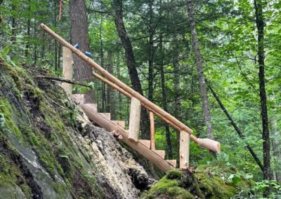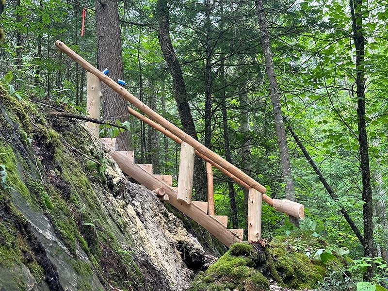 Avant 2024, le sentier était maintenu uniquement grâce au travail de bénévoles et ne disposait d’aucune infrastructure permanente. Toutefois, à l’été 2024, la municipalité de La Minerve a reçu une subvention de Rando Québec, ce qui a permis des améliorations majeures :